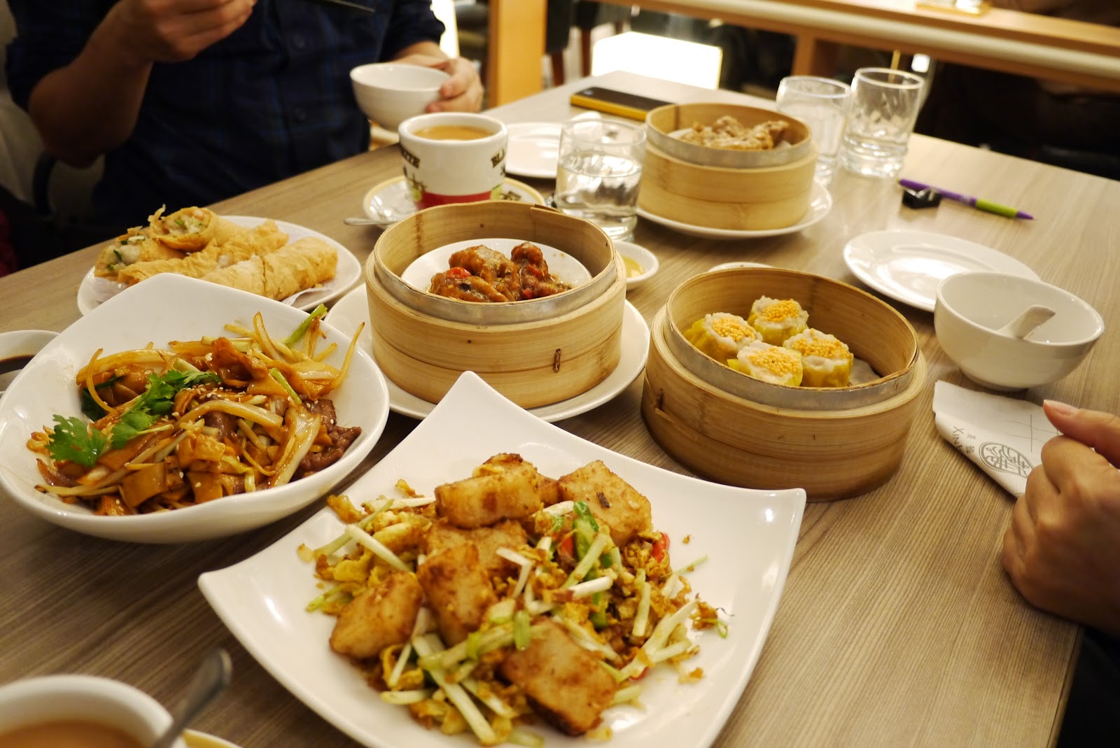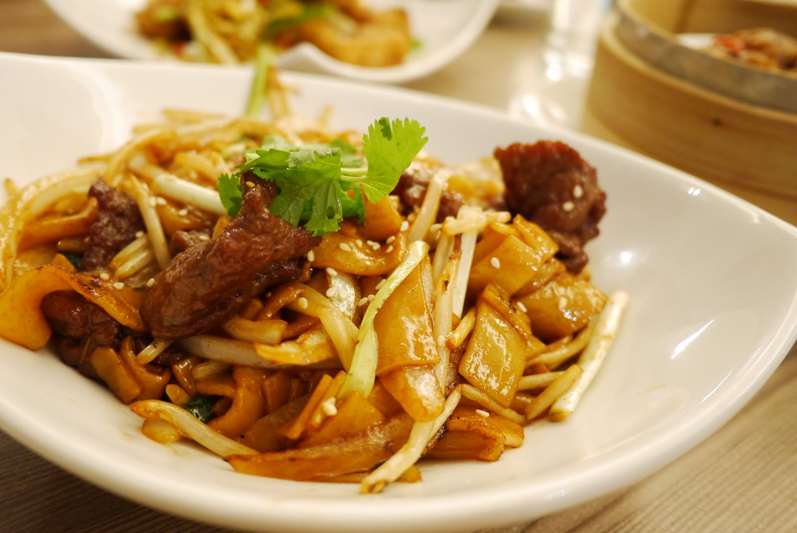 上菜的有: XO醬炒蘿蔔糕、炒牛肉河粉、滷鳳爪