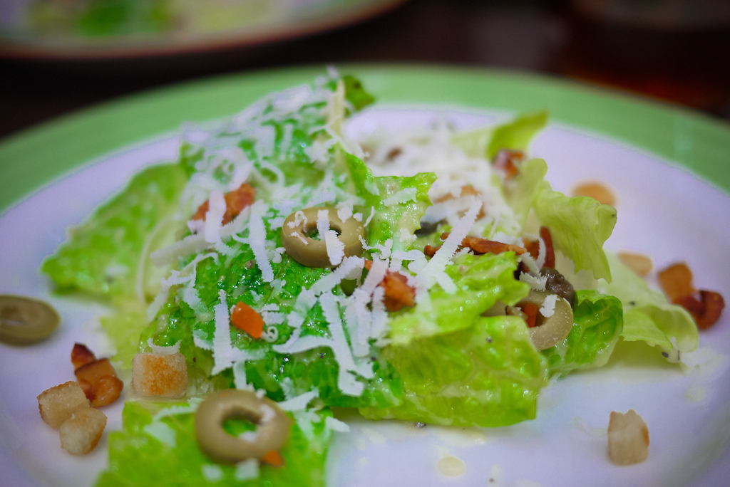 有烤吐司粒、橄欖、酸豆、培根碎塊,