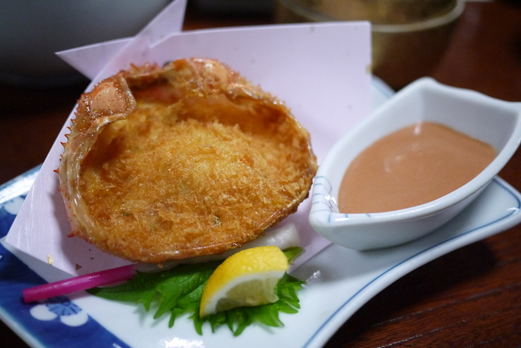 裡面其實是蔬菜+蟹肉揉成的肉團,放在松葉蟹的殼下去油炸~