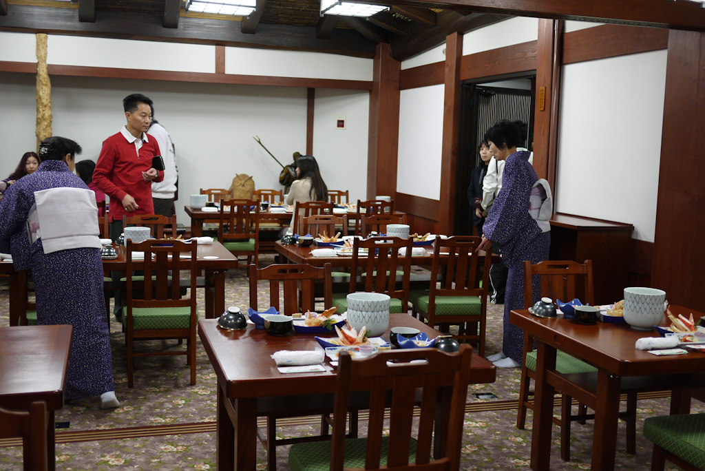 入座前看見導遊與餐廳服務生忙著安排座位~
