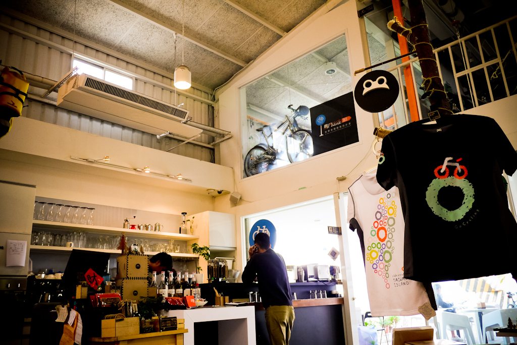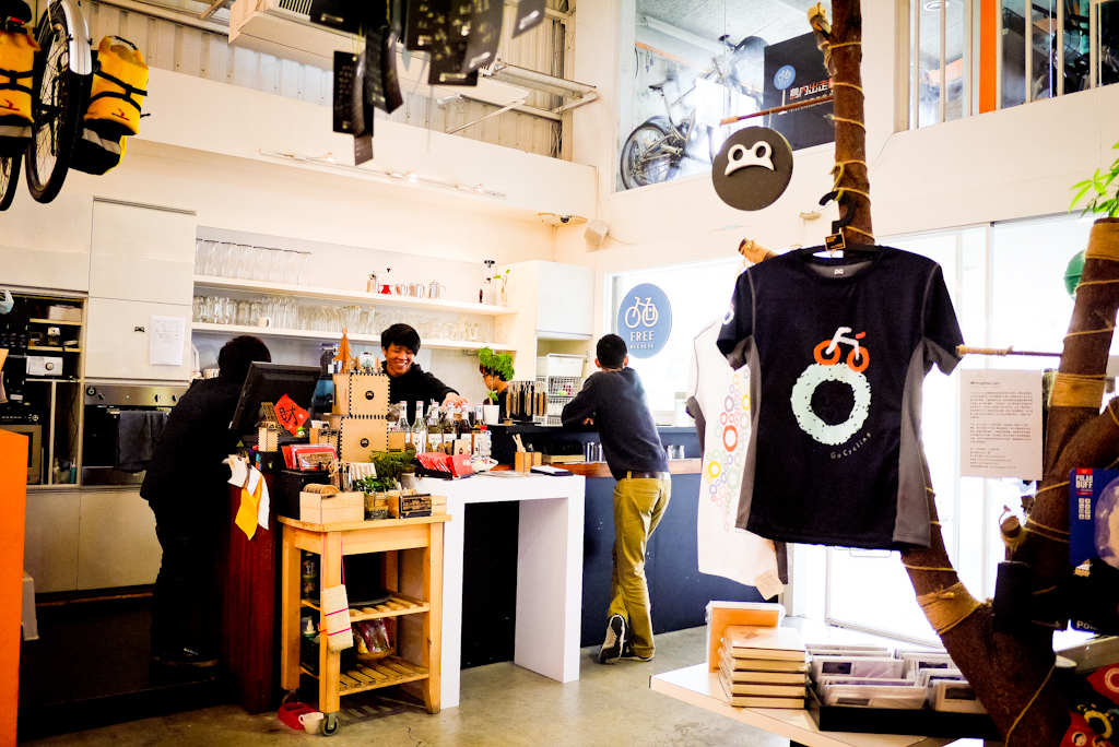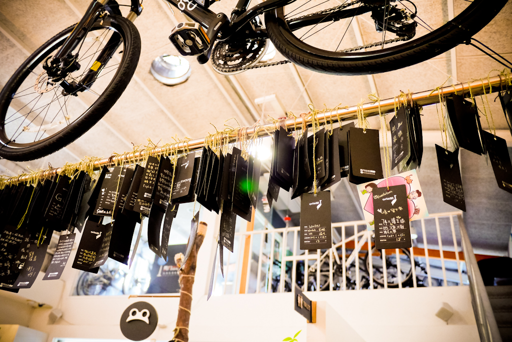 室內其實蠻寬敞的~挑高+半自然採光,天花板上還吊著好幾台的單車,