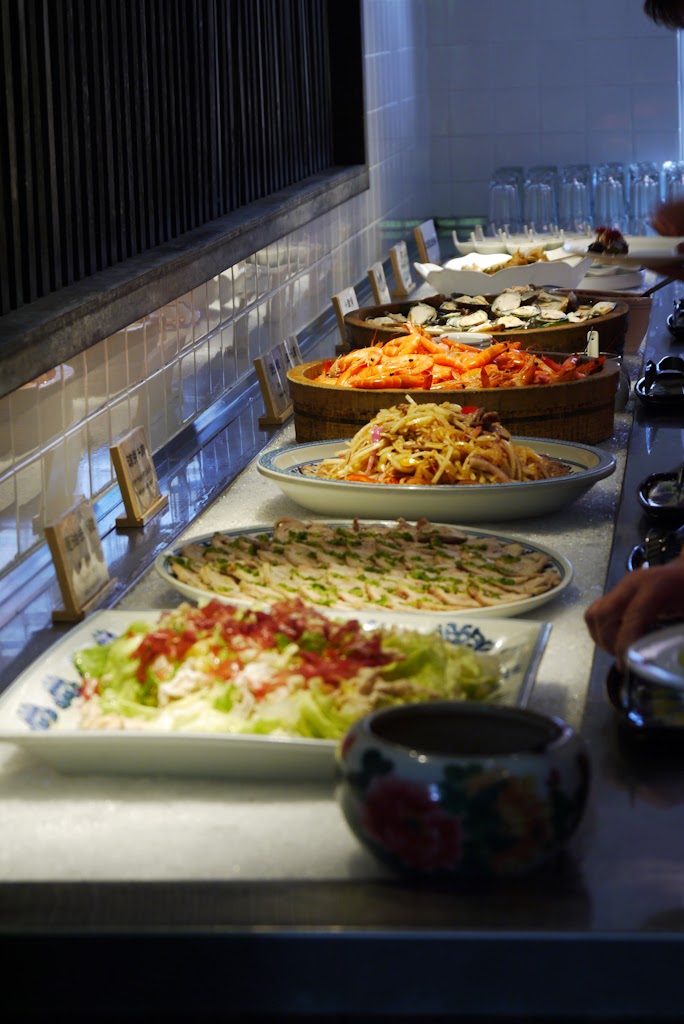 面向入口的左手邊,便是冷盤區,沙拉涼拌、蒸蝦、九孔...等等,也是會變換菜色~