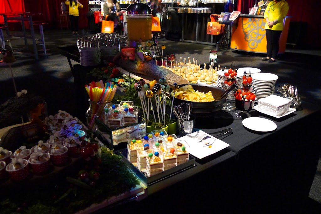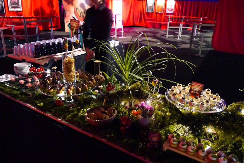 圍著美食與天花板投影螢幕的表演,