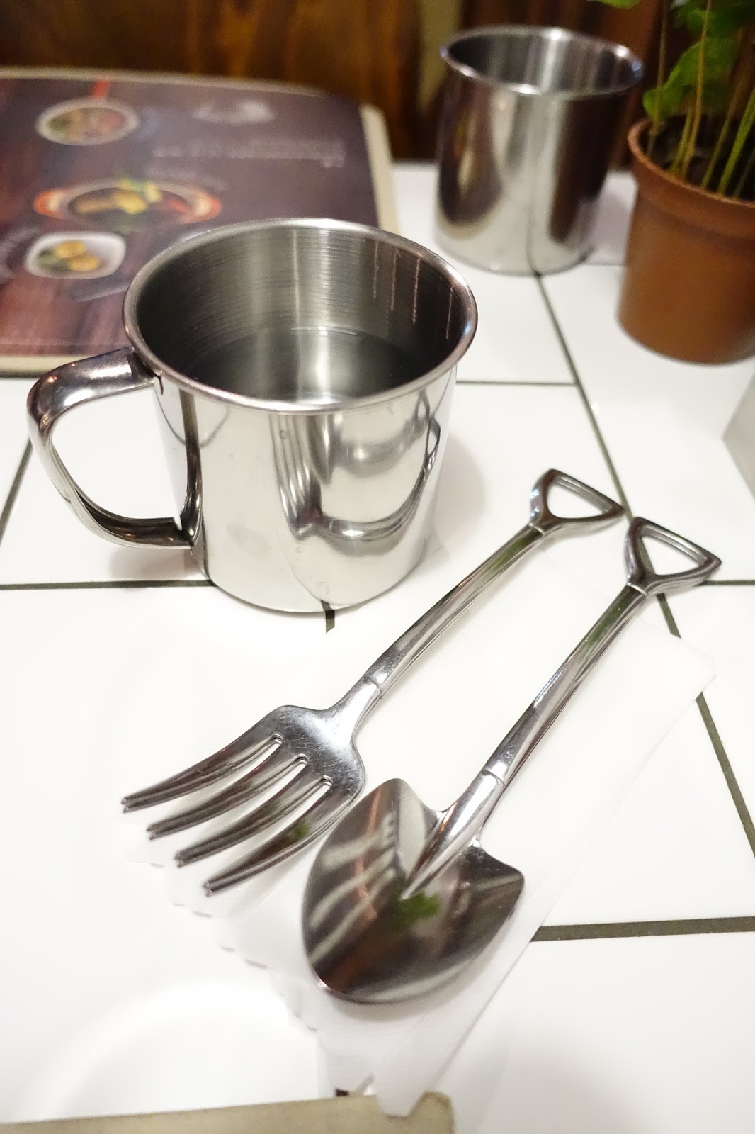 滿視野菜跟咖哩用的調味料,最上方還有把斧頭...嗯...(汗)