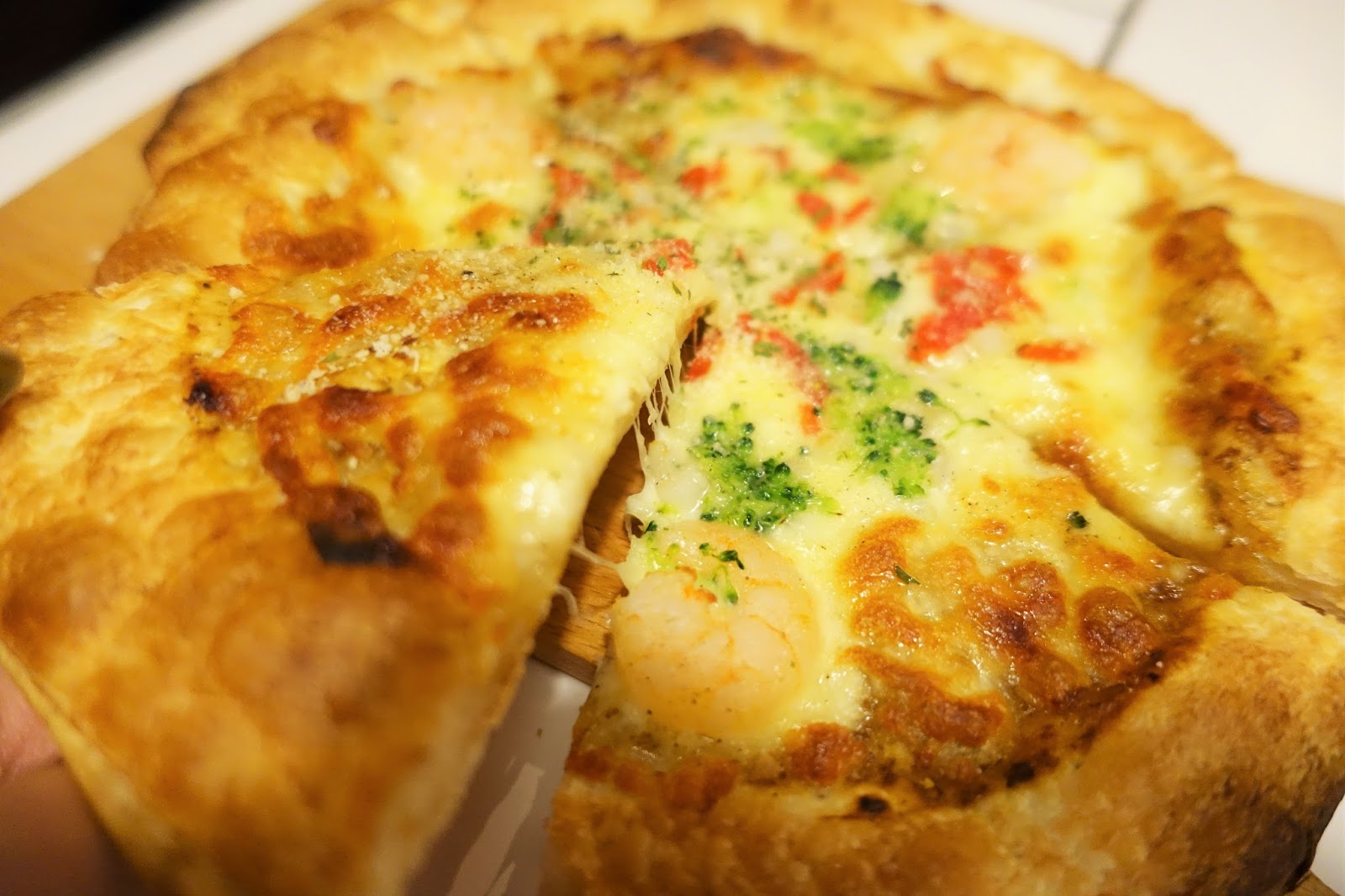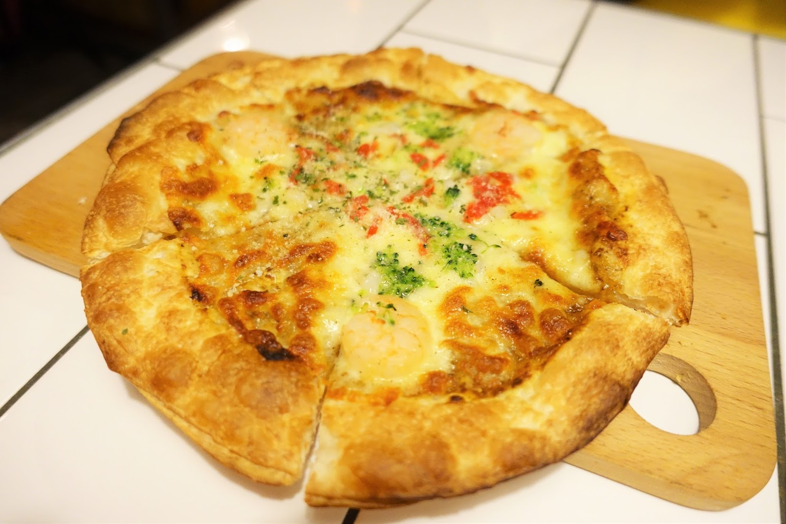 首先上菜的是"雙層海鮮咖哩烤脆皮薄餅"(NT160)